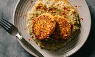 - Rezine bučk na obeh straneh potopite v moko, nato jih pomočite v testo in jih na srednji temperaturi v ponvi s segretim rastlinskim oljem ocvrite do zlate barve.